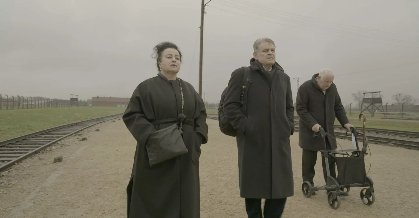 A scene from the documentary “The Commandant’s Shadow,” where some of its protagonists visit the Auschwitz concentration camp.Credit: Warner Bros. Pictures / Tulip En